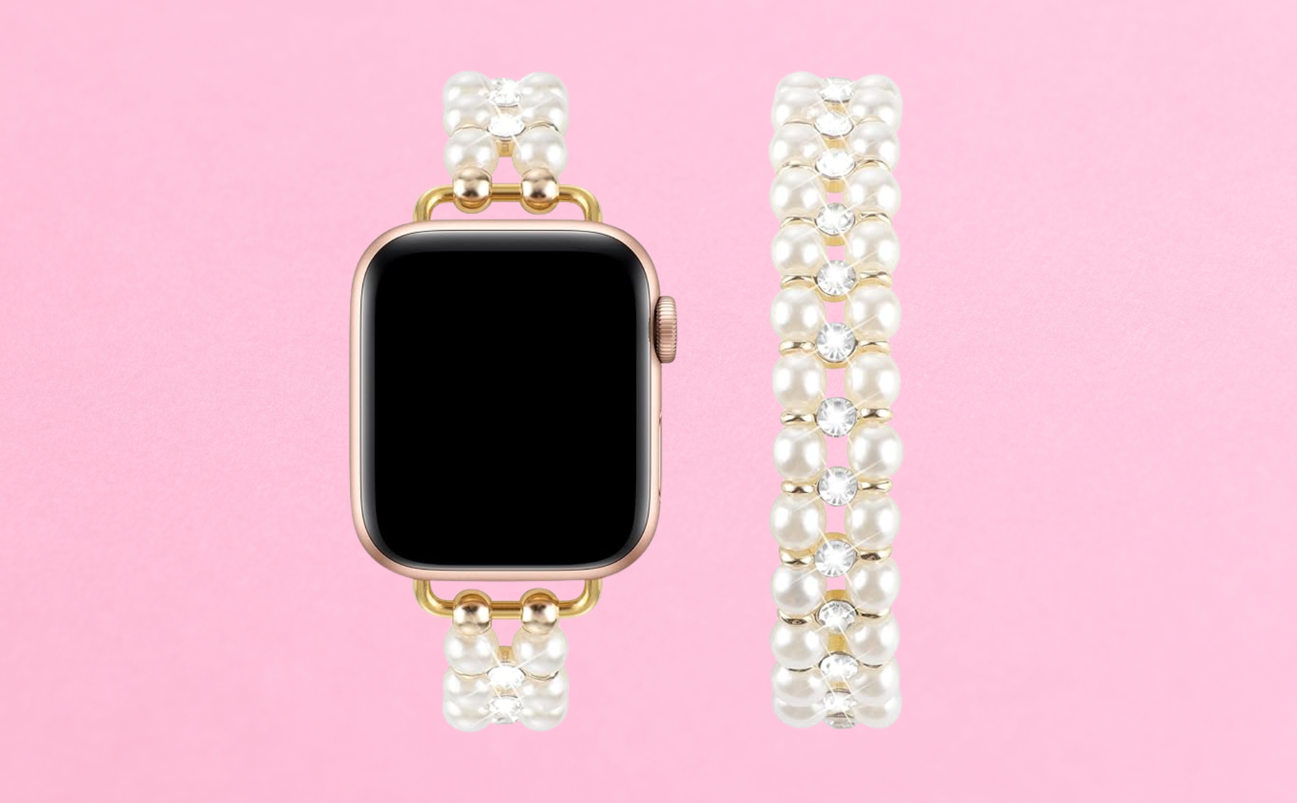 I stopped wearing my Apple Watch a couple of months ago, but now I’m making sure it’s a part of my everyday routine! Out of all the bands I have, this pearl strap is my favorite because it looks beautiful and blends in with my usual bracelet stack. This does run small, so I wear a size medium!